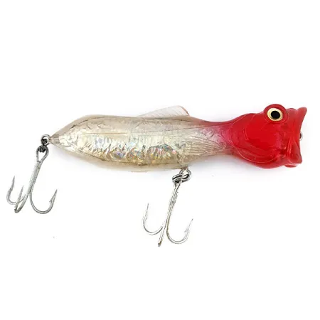 Sveriantis solidžius 75 g (2 3/4 oz), šis sunkiasvoris egzempliorius yra Matzuo Captain Hook Skęstantis modelis, atpažįstamas pagal prekės kodą 16677. 15 cm (6 colių) korpusas išsiskiria klasikinio didelio kontrasto raudona galva, pereinančia į skaidrią sidabro blizgučių vidurinę dalį su tekstūruota vidine apdaila. Ši specifinė apdaila skirta atspindėti šviesą įvairiais kampais spiningaujant ar velkiaujant lašišas, lydekas ar sterkus. Kaip skęstantis variantas, masalas dirba kintamame gylyje, o tai leidžia jį tiksliai išlaikyti tam tikrame vandens sluoksnyje, priklausomai nuo traukimo greičio. „Matzuo America“ prekės ženklas aiškiai matomas auksinėmis raidėmis ant šono, atspindintis prekės ženklo žinomumą JAV rinkoje. Abu trišakiai kabliukai ir žiedeliai yra puikios būklės, atitinkantys 5/5 vertinimą. Puodelio formos priekinė dalis, nepaisant skęstančio tipo, yra būdingas Captain Hook serijos konstrukcinis bruožas, derinamas su tvirtu korpusu, skirtu stambiems gėlavandeniams ir jūriniams plėšrūnams.