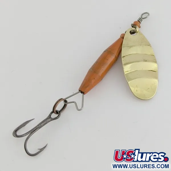 Ant šios sukrės žalvarinio lapelio išspaustas ikoniškas „ABU SPINNAREN REFLEX SWEDEN“ ženklas, o lapelio paviršius turi ryškias briaunas, sukuriančias faktūrinį profilį. Verpstės formos raudonas korpusas (Žalvaris / Raudona) atlieka pasunkinto branduolio funkciją, bendras ilgis siekia 7 cm. 7 g svorio masalas pasižymi stabiliu darbu tolygiai traukiant. Trišakis kablys prie pagrindinės ašies pritvirtintas specialia vieline jungtimi, užtikrinančia tvirtumą. Šio egzemplioriaus būklė vertinama 4/5: žalvaris išlaikęs blizgesį, o korpuso dažai išlikę ryškūs. Produkto kodas 24456.