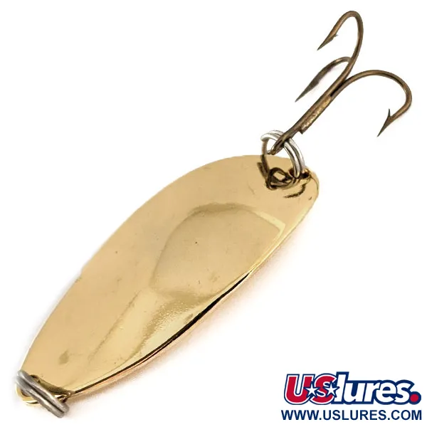 Kitoje pusėje aiškiai išspaustas 2/3 oz (18g) svoris – tai klasikinė šio ikoninio Acme dizaino specifikacija. Poliruota aukso apdaila puikiai atspindi šviesą, o tai yra Little Cleo serijos skiriamasis bruožas, užtikrinantis gerą matomumą įvairiomis vandens sąlygomis. 2 1/4" (5,5 cm) ilgio masalas yra pasunkintas velčiavimui giliame vandenyje arba tolimiems metimams. Abiejuose galuose naudojami tvirti žiedeliai valo tvirtinimui ir trišakiui kabliukui. Šis originalus JAV pagamintas masalas, kurio prekės kodas 11252, pasižymi savita kuprėta forma, dešimtmečius apibūdinančia prekės ženklo profilį. Paviršius yra puikios būklės, įvertintas 5/5 balais už švarų, atspindintį aukso sluoksnį.