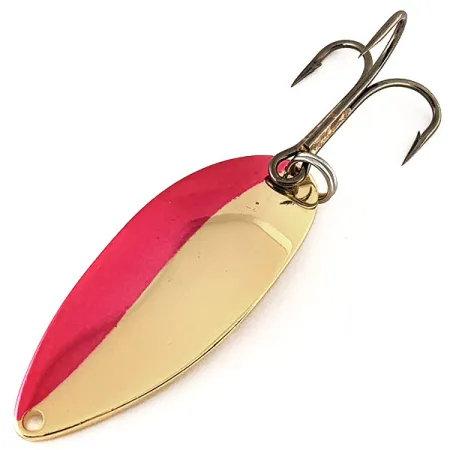 Ši 21g (3/4oz) svorio blizgė pasižymi išskirtine gilia forma, kuri dešimtmečius apibūdina Acme vartiklių dizainą. Priekinė dalis padengta ryškiu dviejų spalvų raštu: viena pusė nudažyta intensyvia raudona spalva, kontrastuojančia su kita poliruota, auksuota puse. 6,5cm (2 1/2") ilgio metalinis korpusas pereina į vientisą auksuotą nugarėlę, kurioje žalvario paviršiuje išspaustas pavadinimas „LITTLE CLEO“ ir svoris. Šis JAV pagamintas masalas (produkto kodas 12256) pasižymi veidrodiniu spindesiu, vertinamu 5/5 būkle. Jame sumontuotas tvirtas alavuotas trišakis kablys ir sustiprinti žiedeliai, tinkantys spiningavimui ir velkiavimui tiek gėlame, tiek sūriame vandenyje. Spalvų perėjimas yra aštrus, o įspaudai nugarėlėje išlieka aiškūs ir lengvai įskaitomi.