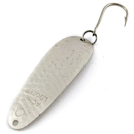 Kalto sidabro tekstūra per visą 4 g korpusą sukuria daugiabriaunį atspindintį paviršių, skirtą efektyviai gaudyti šviesą velkiaujant. Ši 6 cm „Acme Looter“, atpažįstama pagal prekės kodą 20485, yra specializuota vartiklė, pasižyminti klasikiniu amerikietiško metalo apdirbimo paprastumu. Kita pusė yra lygi, su aiškiai įspaustu gamintojo bei modelio pavadinimu, o visas masalas yra puikios 5/5 būklės. Prie lašelio formos korpuso uodegos tvirtu žiedeliu pritvirtintas vienšakis kablys, o galvutėje yra tiksliai išgręžta anga valui tvirtinti.