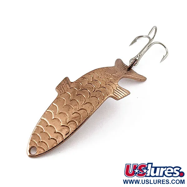 Ši klasikinė 7 g (1/4 oz) svorio blizgė pasižymi giliu įspaustu žvynelių raštu, kuris sukuria ryškų trimatį efektą. Pagamintas „Acme“ įmonės JAV, šis masalas ant savo lygios nugarinės pusės turi aiškiai įspaustą „PHOEBE“ pavadinimą. Vientisa vario danga išlieka ryški per visą 5 cm (2") ilgį, o masalas gavo 5/5 būklės įvertinimą dėl savo švaraus paviršiaus ir matomų nusidėvėjimo žymių nebuvimo. Atpažįstamas pagal prekės kodą 17793, metalinis korpusas pasižymi tikrovišku žuvies profiliu su išryškintais pelekais ir lenkta uodega. Tvirtas trišakis kablys prie galinės dalies pritvirtintas per žiedelį, o priekinėje dalyje yra viena anga valui tvirtinti. Jo hidrodinaminė konstrukcija skirta universaliam naudojimui – ji veikia patikimai tiek lėtai traukiant seklumose, tiek metant į gilesnius vandenis.