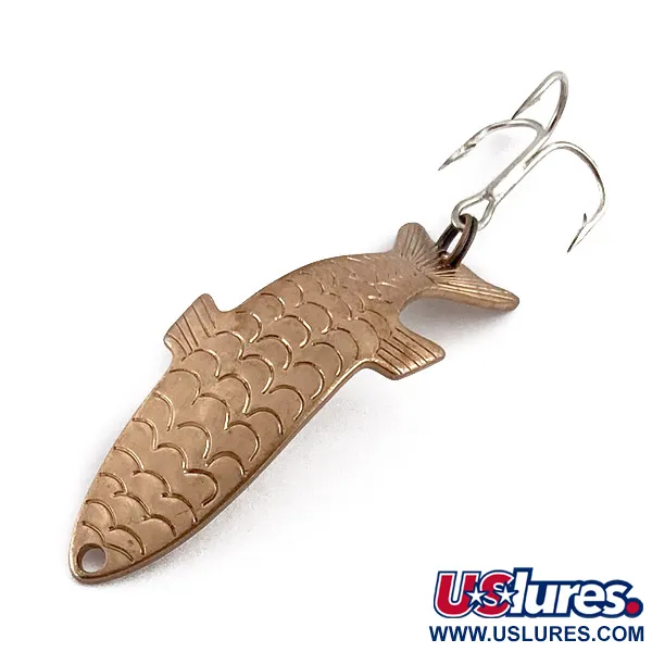 Šio klasikinio amerikietiško dizaino masalo išskirtinumas – šiltas vario spindesys, iškart patraukiantis akį. 7 g (1/4 oz) svorio „Acme Phoebe“ pasižymi savitu išlenktu korpusu, kuris tiksliai atitinka mažos žuvelės formą. Per visą 5 cm (2") ilgį įspaustas žvynų raštas sukurtas taip, kad sukurtų trimatį vaizdinį efektą, viliojantį plėšrūnus įvairiuose gyliuose. Šis konkretus pavyzdys, identifikuojamas pagal prekės kodą 23454, yra pagamintas JAV ir tinka tiek tolygiam, tiek greitesniam traukimui. Masalas apginkluotas aštriu trišakiu kabliuku, pritvirtintu prie galinės dalies vienu žiedeliu. Būklė vertinama 5/5: metaliniai paviršiai atrodo itin švarūs, o įspaustos detalės išliko ryškios.