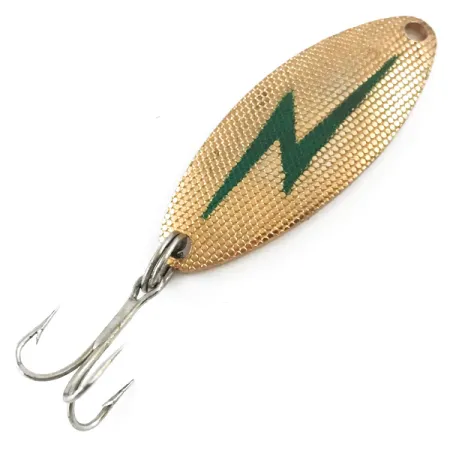 Iškilųjį šios vartiklės paviršių dengia reljefinė auksinė tekstūra, sukurianti briaunuotą paviršių, kuris atspindi šviesą keliomis kryptimis. Lygiame auksiniame reverse įspaustas pavadinimas „THE STREAK“, identifikuojantis jį kaip nebegaminamą vintažinį masalą iš „Acme“ amerikietiškos gamybos istorijos. Ryškiai žalias žaibo grafinis elementas yra centruotas tekstūruotame priekyje, ryškiai kontrastuodamas su metaliniu fonu. Šis egzempliorius, pažymėtas prekės kodu 5372, yra 1 3/4" (4,2 cm) ilgio ir sveria 3/16 oz (4,5 g). Masalas išliko išskirtinės būklės, įvertintas 5/5 balais už švarius paviršius ir nepažeistą grafiką. Jame sumontuotas sidabrinio atspalvio trišakis kabliukas ir tvirtas žiedelis gale.