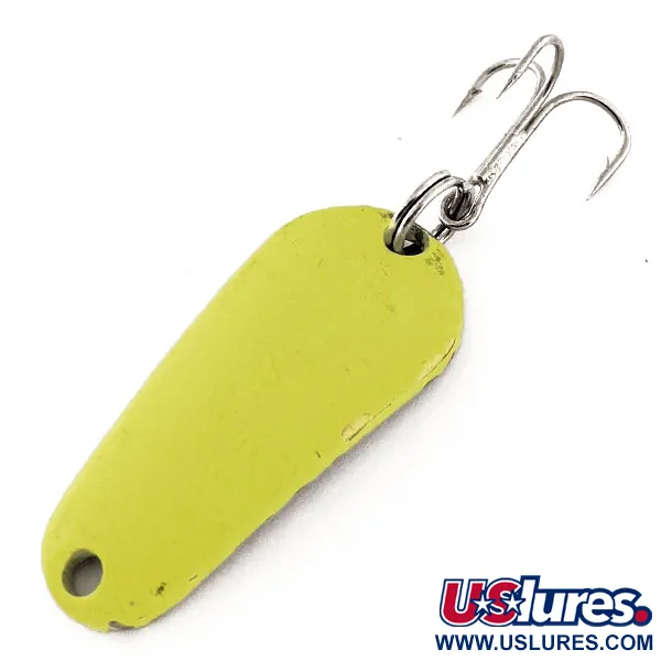 Ši JAV pagaminta 1/4oz (7 g) svorio vartiklė pasižymi kompaktišku profiliu, skirtu universaliam pateikimui įvairiuose vandens sluoksniuose. Aeroplane Spinner sukūrė Aero UV modelį (produkto kodas 11824), turintį 1 1/2" (3,7 cm) korpusą, dažytą Chartreuse / Aukso spalva. Ši fluorescencinė danga yra specialiai sukurta reaguoti į ultravioletinius spindulius, užtikrinant stiprų žalią švytėjimą ir puikų matomumą prasto apšvietimo sąlygomis. Konstrukciją sudaro tvirtas žiedelis ir aštrus trišakis kabliukas, atitinkantys patikimus klasikinės amerikietiškos žūklės įrangos standartus. Būklė vertinama 5/5 – masalas turi tik minimalių paviršinių dažų žymių ir išlaiko aukštos kokybės blizgesį. Lašo forma ir tvirta metalinė konstrukcija atspindi funkcionalų dizainą, skirtą žvejams, gaudantiems žuvų rūšis, kurioms spalvinis patrauklumas yra pagrindinis veiksnys.