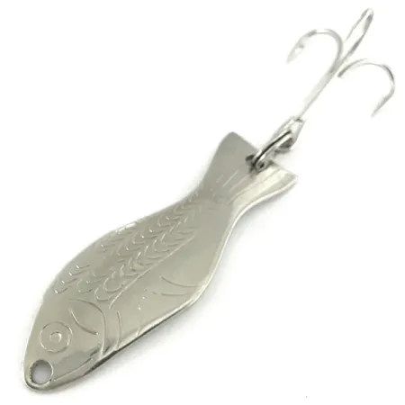 Poliruotas nikelio sluoksnis dengia šios ikoniškos vartiklės 7 g (1/4 oz) žuvies formos korpusą, išryškindamas įspaustų žvynų raštus ir žiaunų detales šonuose. 5 cm (2 colių) ilgio įgaubta nugarėlė aiškiai rodo Al's Gold Fish gamintojo spaudus ir originalų patento numerį 2 542 806, kuris šį dizainą nukelia į 1952 metus. Šis konkretus pavyzdys, žymimas prekės kodu 7236, yra 5/5 būklės, išlaikantis puikiai atspindintį paviršių visame siluete. 2006 metais „Field & Stream“ pripažintas vienu iš 50 geriausių visų laikų masalų, jis pasižymi paprasta, bet efektyvia konstrukcija: gale sumontuotu trišakiu kabliuku ir viena kilpele nosies dalyje. Įspaudas nugarėlėje išlieka gilus ir įskaitomas – tai aukštų gamybos standartų, pradėtų taikyti JAV, ženklas.