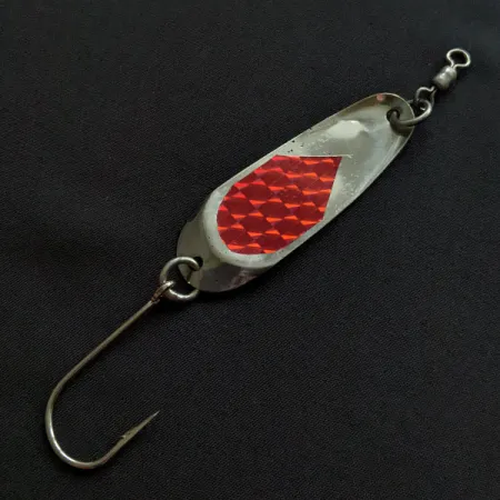 Raudona prizminė juostelė sukuria kontrastingą akcentą ant šios 7 g klasikinės blizgės nikeliuoto korpuso. Tiksliai 6 cm ilgio Andy Reekers blizgė atspindi JAV Vakarų pakrantės žūklės įrankių gamybos aukso amžių. Blizgė apginkluota dideliu vienšakiu kabliuku, pritvirtintu tvirtu žiedeliu, o komplektacijoje esantis suktukas neleidžia persisukti valui. Šis masalas (kodas 20373) yra puikiai išlaikytas – būklė vertinama 4/5, matomos tik nedidelės laiko žymės. Pailgas, grakštus profilis būdingas vartiklėms, skirtoms tiek spiningavimui, tiek velkiavimui.