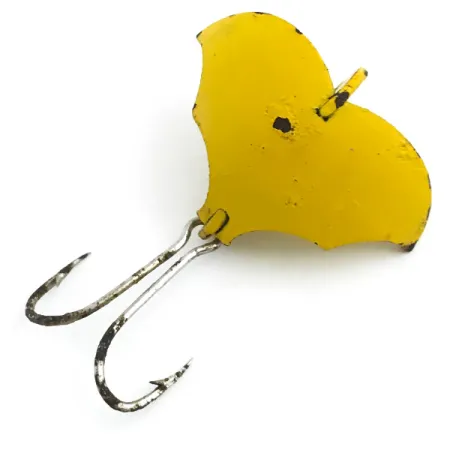 Šis 5 g (3/16 oz) masalas, išštampuotas iš metalo ir padengtas ryškiai geltonu atspalviu, atspindi unikalią „Prescott Spinner“ kompanijos dizaino filosofiją. Tiksliai 2,5 cm (1") ilgio „Baby Bat“ pasižymi trijų sparnų konfigūracija, sukuriančia jam būdingą siluetą. Šis JAV pagamintas masalas, kurio produkto kodas 5455, turi didelį dvigubą kabliuką, pritvirtintą prie uodegos dalies apačios. Kolekcionieriai įvertins 4/5 būklės reitingą, atkreipdami dėmesį į nedidelius dažų nutrynimus kraštuose ir palei centrinę briauną, kur matomas metalas. Viršuje esanti kilpelė yra švari ir paruošta montavimui, o geltonas emalis išlaikė didžiąją dalį savo pradinio blizgesio.