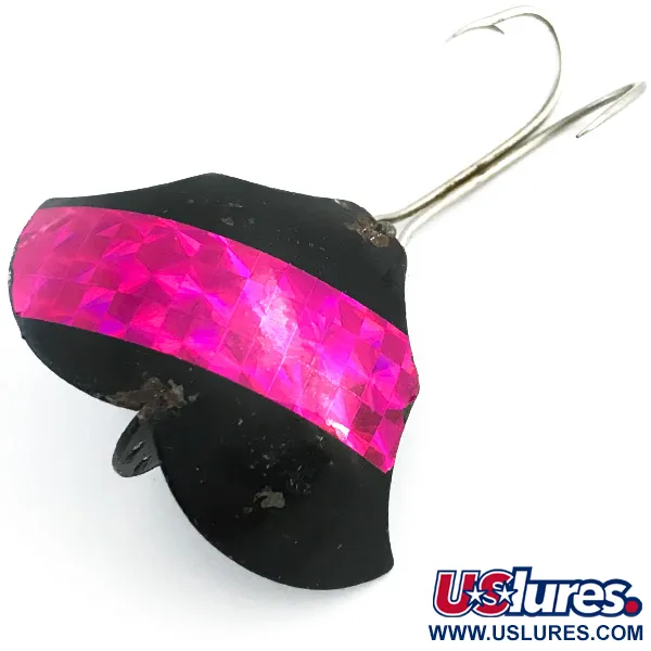 Sverianti 14 g (1/2 oz), ši blizgė pasižymi kompaktišku 3,5 cm (1 1/2") kūnu, demonstruojančiu unikalią „Prescott Spinner Company“ inžineriją. Juodai emaliuotą paviršių kerta plati, holografinė purpurinė-rožinė juosta, kuri suteikia didelio kontrasto atspindintį elementą tamsiame fone. Sparno formos struktūros vidinėje pusėje pavadinimas „Baby“ yra įspaustas tiesiai į metalą, identifikuojant šį gaminį kaip „Baby Bat“ modelį su produkto kodu 5456. Furnitūrą sudaro tvirtas dvigubas kablys, pritvirtintas prie vielos kilpos – tokia konstrukcija skirta ilgaamžiškumui užtikrinant patikimą žuvies laikymą. Pagaminta JAV, ši blizgė yra 4/5 būklės, su gerai išsilaikiusiais dažais ir švaria holografine aplikacija, tik su nedideliais amžiaus požymiais ant kabliuko kotelio ir metalinių kraštų.