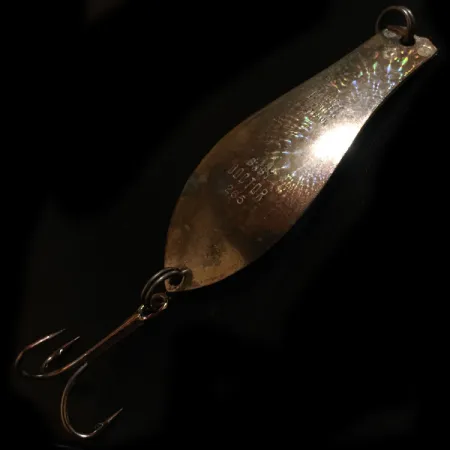 Giliai į spaustas į metalinį paviršių, „BABY DOCTOR 265“ antspaudas žymi šią 1/3oz (10g) vartiklę kaip „Prescott Spinner“ klasika. Ši JAV pagaminta blizgė, identifikuojama prekės kodu 5642, yra 2 1/2" (6,5 cm) ilgio. Jos „Crystal“ spalva pasižymi holografine dengimo technika, kuri buvo nutraukta iki 1980 m., o tai padeda kolekcininkams nustatyti šio egzemplioriaus amžių. Atspindintis paviršius yra gerai prižiūrėtas ir ryškus, atitinkantis 4/5 būklės įvertinimą. Tvirti žiedeliai jungia furnitūrą, įskaitant aštrų trišakį kabliuką, skirtą velkiavimui arba spiningavimui gėluose vandenyse. Paprastas kilpelė valui tvirtinti yra siaurajame lašo formos korpuso gale.