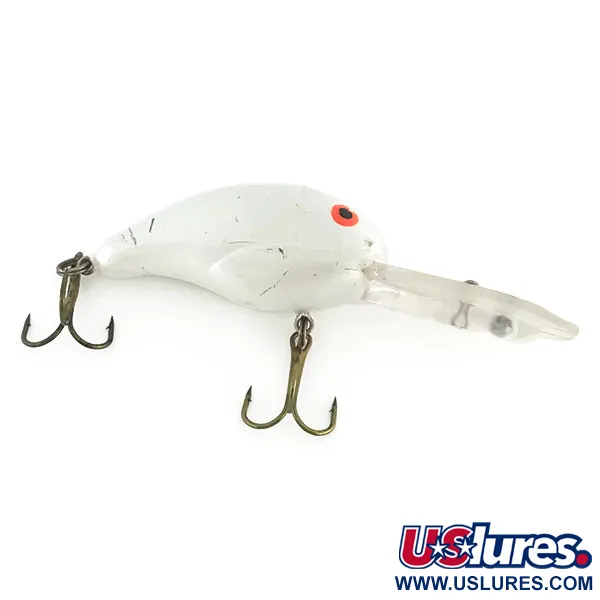 Perlinė balta spalva apibūdina šio Bandit 300 kūnelį – tai kompaktiškas crankbait tipo vobleris, skirtas žvejybai 2,4–3,6 m (8–12 pėdų) gylyje. 10,5 g (3/8 oz) sveriantis masalas žymimas produkto kodu 8635 ir pasižymi smūgiams atspariu skaidriu liežuvėliu, integruotu į plaukiantį korpusą. 5 cm (2 colių) profilį išryškina ryškiai oranžinės akys, kurios išsiskiria švariame perlamutriniame fone. Masalo būklė vertinama 4/5 – matomos nežymios paviršinės žymės nuo laikymo dėžutėje, o originalių trišakių kabliukų metalas yra natūraliai patamsėjęs. Šiame modelyje įmontuota vidinė tarškėjimo sistema, tinkanti spiningavimui ar velčiavimui gaudant lydekas ir sterkus gilesniuose vandens sluoksniuose. Visa furnitūra išlieka tvirta ir funkcionali, atspindinti patikimą šios vintage Bandit serijos JAV gamybos kokybę.