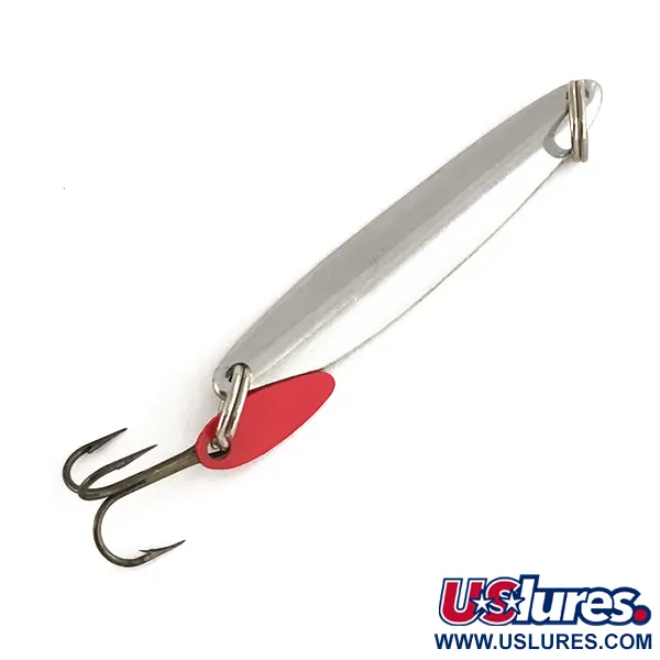 Ši 4,5 cm (1 3/4") ilgio Bay de Noc vertikalioji blizgė pasižymi ryškiu mėlynu prizminiu įdėklu poliruoto nikelio paviršiuje. 5,5 g (3/16 oz) svorio masalas, žymimas prekės kodu 7442, yra puikus Gladstone, Mičigano valstijos meistriškumo pavyzdys, formavęs poledinę žūklę ištisoms kartoms. Konstrukcija sutelkta į liekną, pasunkintą korpusą, kuris palengvina masalo pateikimą giliuose vandenyse, derinant jį su ikoniška raudona plastikine uodegėle ant apatinio žiedelio. Šis papildomas elementas tarnauja kaip vizualinis taikinys tiesiai prie bronzinio trišakio kabliuko. Masalas yra puikios būklės (įvertinimas 5/5), su švariais atspindinčiais paviršiais ir tvirta furnitūra. Dideli jungiamieji žiedeliai abiejuose galuose užtikrina saugų valo tvirtinimą ir laisvą kabliuko judėjimą vertikaliai džigaujant ar spiningaujant.