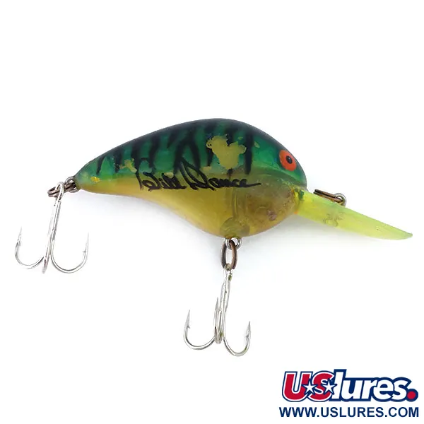 6 cm (2 1/4") ilgio „Bill Dance Signature Bomber Fat A“ vobleris pasižymi legendinio žvejo vardu, užrašytu ryškiomis juodomis raidėmis ant žalios ir geltonos spalvos dryžuoto paviršiaus. Šis 18 g (2/3 oz) barškantis masalas, kurio prekės kodas 10903, yra neutralaus plūdrumo (suspending), todėl sustabdžius jis lieka tam tikrame gylyje traukiant jį 2,9–3,6 m (9,5–11,8 pėdų) gylyje. Priekyje yra didelis, permatomas geltonas liežuvėlis, skirtas tiek spiningavimui, tiek velkiavimui gaudant ešerius, sterkus ir lydekas. Išorėje masalas turi ryškiai raudonas akis ir sidabro spalvos trišakius kabliukus. Bendros būklės įvertinimas – 4/5, matomas nedidelis dažų nusitrynimas ant nugaros ir pečių srities, tačiau likusi apdaila išlieka ryški. Jis pagamintas JAV kaip giliai nardantis įrankis įvairioms gėlavandenėms žuvims.