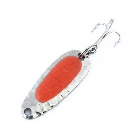 Kaltas nikelis sukuria intensyvų blyksėjimą šiai kompaktiškai 3,5 cm (1 1/2") žalvarinei blizgei. 4,5 g (3/16 oz) sverianti Blue Fox Pixee UV pasižymi klasikinės lašo formos profiliu, sukurtu išlaikyti stabilią eigą stiprioje upės srovėje ar giliose ežero duobėse. Pagrindinė šio modelio (kodas 11006) savybė yra centrinis raudonas intarpas, imituojantis lašišos ikrą. Šis fluorescencinis elementas reaguoja į UV šviesą, užtikrindamas ryškų taikinį prasto matomumo vandenyje. Blue Fox šį masalą sukonstravo taip, kad jis būtų pakankamai sunkus tolimiems metimams net pučiant vėjui. Blizgė yra puikios būklės su švaria apdaila (įvertinimas 5/5). Prie galinio žiedo pritvirtintas aštrus trišakis kablys, paruoštas upėtakių, lašišų ar ešerių žūklei.