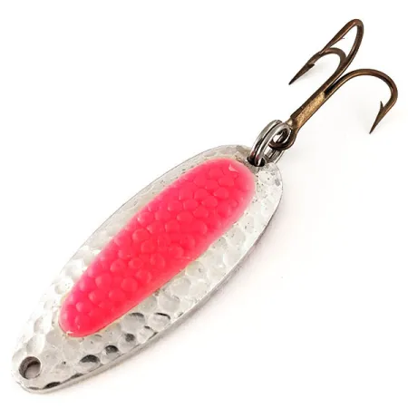 Sverianti 1/2 oz (14 g), ši masyvi žalvarinė blizgė sukurta skrosti pakrantės vėjus ir lengvai pasiekti gilias upės duobes. 2 1/4" (5,5 cm) ilgio korpusas pasižymi klasikine kalto nikelio apdaila, sukurta sklaidyti šviesą panašiai kaip atspindintys masalinės žuvies žvynai. Išskirtinė produkto kodo 12363 savybė yra unikalus imituotas lašišos ikro įdėklas; šiame konkrečiame Blue Fox Pixee UV modelyje šis raudonas įdėklas sukuria puikiai matomą taikinį, kuris intensyviai švyti tamsiame vandenyje arba esant prastam apšvietimui. Blizgė komplektuojama su bronzinės apdailos trišakiu kabliuku ir tvirtu žiedeliu, paruošta lašišų, plienagalvių upėtakių ar lydekų traukimui. Šis masalas kildinamas iš originalių National Expert Bait dizainų, ištobulintų natūraliam vartymuisi upės srovėse arba stabiliam darbui velkiaujant. Egzempliorius yra puikios būklės, matosi kruopštaus saugojimo žymės, įvertintas 5/5 balais.