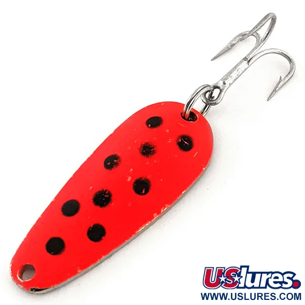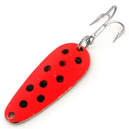 Ši 1/2 oz (14 g) sverianti, JAV pagaminta Blue Fox blizgė pasižymi lašo formos profiliu, skirtu tolimiems ir tiksliems metimams. Tiksliai 2" (5 cm) ilgio Tor-P-Do UV modelis (produkto kodas 12795) turi itin kontrastingą raudoną priekinę dalį su juodais taškeliais ir nikeliuotą nugarėlę. Pagrindinis šio masalo privalumas – fluorescencinė, UV spinduliams jautri danga, kuri reaguoja į ultravioletinę šviesą, užtikrindama matomumą drumstame vandenyje ar prasto apšvietimo sąlygomis. Tvirtas žiedelis jungia korpusą su poliruotu nikelio trišakiu kabliu, garantuojančiu patikimą laimikio užkibimą. Kiekviena detalė, nuo kruopštaus dažymo iki furnitūros, atitinka puikią 5/5 būklę. Paprasta forma leidžia žvejoti įvairiuose gyliuose, o didelis svoris pagal masalo dydį užtikrina greitą panirimą. Galvutėje esanti anga suteikia tvirtą tašką tiesioginiam rišimui arba suktukui su segtuku.