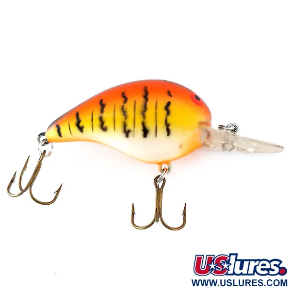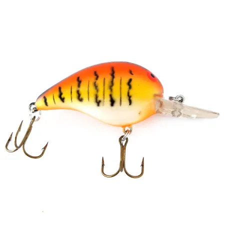 „Red Tiger“ raštas puošia šį klasikinį 5 cm (2 colių) voblerį, išsiskiriantį kontrastingais oranžinės ir geltonos spalvos perėjimais bei ryškiais juodais vertikaliais dryžiais. Šis Bomber Fat A B05F, kurio produkto kodas 11083, sveria 10 g (1/3 oz) ir yra skirtas spiningavimui 1,8–2,4 m (5,9–7,9 pėdų) gylyje. Masalas pasižymi klasikinio apvalaus profilio kūneliu su ryškiai juoda juosta per nugarą ir balkšva pilvo dalimi. Skaidrus liežuvėlis turi tvirtą žiedelį valui tvirtinti bei du originalius bronzinio atspalvio trišakius kabliukus. 5/5 būklės įvertinimą turintis masalas atrodo puikiai išsilaikęs: akys ryškiai raudonos ir juodos, o dažymo linijos itin tikslios. Pagamintas JAV, šis plaukiantis modelis yra nepakeičiamas gaudant ešerius ir šapalus vidutiniuose vandens sluoksniuose. Žiedeliai ir kabliukų geluonys išlaikę originalų tvirtumą.