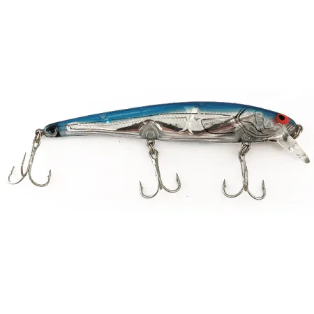 12 cm ilgio nuo nosies iki uodegos, lieknas šio Bomber Long A siluetas išlieka pagrindiniu pasirinkimu žvejams, medžiojantiems dideles lydekas ir starkius. XBBO apdaila sujungia permatomą mėlyną nugarėlę su vidiniu atspindinčiu sidabrinių žvynų raštu ir ryškiomis raudonomis akimis, kurios yra aiškus taikinys plėšrūnui. Šis konkretus masalas, turintis produkto kodą 11376, sveria 12 g ir turi įmontuotą barškutį geresniam matomumui vandenyje. Kaip suspender tipo vobleris, jis leidžia kontroliuoti gylį: paneria iki 0,6–0,9 m standartinio metimo metu arba pasiekia 1,2–2,4 m velkiaujant. Šio JAV pagaminto egzemplioriaus būklė yra 5/5, o trys trišakiai kabliukai ir skaidrus liežuvėlis atitinka originalius gamyklos standartus.