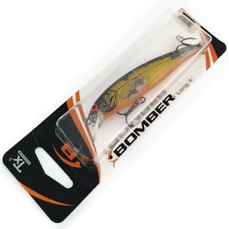Tiksliai 9 cm (3 1/2") ilgio, grakštaus profilio klasikinis „jerkbait“ vobleris išlieka pagrindiniu įrankiu žvejams, gaudantiems viską – nuo sterkų iki ešerių. Šis konkretus modelis, kurio prekės kodas 9809, pasižymi XCHO spalvine gama – auksinis-geltonas korpusas su tamsiais vertikaliais dryžiais ir gerai matoma raudona akimi. Sveriantis 9,5 g (1/3 oz), masalas sukurtas universalumui skirtinguose vandens sluoksniuose; spiningaujant jis pasiekia 0,6–0,9 m gylį, o velkiaujant – gilesnes 1,2–2,4 m zonas. Antikvarinė pakuotė nurodo, kad šis vienetas buvo surinktas Meksikoje ir turi Tx3 kabliukus. Šis egzempliorius yra nenaudotas ir išlikęs originalioje lizdinėje pakuotėje (blisteryje), išlaikant 2004-ųjų eros „Bomber Lures“ prekės ženklą bei skaidrų, kvadratinio pjūvio liežuvėlį. Tai puikiai išlaikytas B14A serijos pavyzdys, tinkamas gaudyti didžiažiočius, mažažiočius bei dryžuotuosius ešerius.
