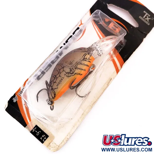 Sveriantis tiksliai 9 g (1/3 oz), šis vintažinis „crankbait“ tipo vobleris reprezentuoja žymų gamybos laikotarpį Ekvadore. 5,5 cm (2 1/4") ilgio korpusas pasižymi detaliu vėžio raštu, kurį išryškina ryškiai oranžinis pilvelis ir rusvas šarvas su tamsiomis anatominėmis linijomis. Model 7A Baby Striper pavadinimu žymimas masalas yra plaukiantis nardantis vobleris, skirtas dirbti 2,4–3,0 m (8–10 ft) gylyje. Žvejai dažniausiai renkasi šį dydį spiningavimui arba velkiavimui gaudant sterkus ir lydekas. Šis egzempliorius yra nenaudotas ir išsaugotas originalioje skaidrioje pakuotėje, todėl gamyklinis padengimas ir furnitūra išliko nepriekaištingos būklės. Skaidrus liežuvėlis yra tvirtai integruotas į priekinę dalį, o tai yra „Model A“ serijos konstrukcijos skiriamasis ženklas. Produkto kodas: 10284.