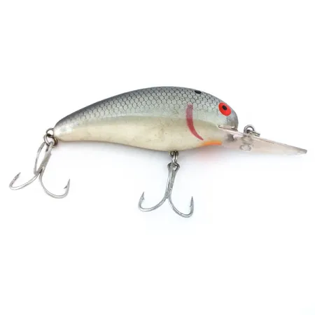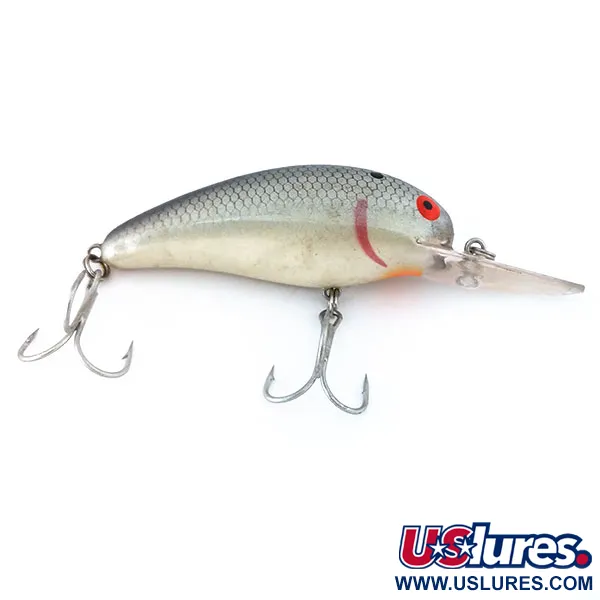 Žvynų raštas viršutinėje kūno dalyje sklandžiai pereina į kreminės spalvos pilvelį šiame Bomber Model A 67 modelyje – tai klasikinis amerikietiškos masalų gamybos pavyzdys. Šis 14 g (1/2 oz) svorio ir 6,7 cm (2 3/4") ilgio plaukiantis vobleris turi skaidrų liežuvėlį, skirtą pasiekti 2,4–3,0 m (8–10 pėdų) gylį. Vizualinį profilį paryškina ryškiai raudona žiaunų žymė ir išraiškingos raudonos akys su juodais vyzdžiais, kurios tampa pagrindiniu akcentu sidabriškai pilko žvynų rašto fone. Gaminys žymimas kodu 10834, o vidinis barškėjimo mechanizmas vilioja žuvis tiek spiningaujant, tiek velkiaujant. Masalas yra puikios būklės (įvertinimas 5/5), su gerai išlaikyta furnitūra ir danga.