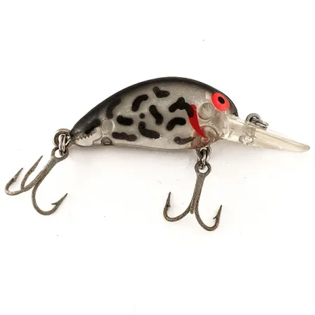 Sveriantis lygiai 1/4 oz (7 g), šis kompaktiškas crankbait tipo vobleris puikiai iliustruoja meistriškumą, dėl kurio Bomber vardas tapo žinomas kiekvienam Amerikos masalų gamintojui. Šis 1 3/4" (4,5 cm) modelis, žymimas kodu 12519, pasižymi permatomu dūminio sidabro korpusu, papuoštu ryškiomis juodomis leopardo dėmėmis ir subtiliais raudonais žiaunų brūkšniais. Sukurtas kaip plaukiantis masalas, jis naudoja skaidrų, apvalų liežuvėlį, kad pasiektų 0,9–2,1 m (3–7 pėdų) gylį – tai klasikinis diapazonas žvejojant aktyvius standartinius sterkus ar lydekas. Vizualinį profilį pabrėžia išskirtinės raudonos akys su juodais vyzdžiais – bruožas, kurio kolekcininkai dažnai ieško ankstyvuosiuose plastikiniuose Bomber modeliuose. Įranga yra 5/5 būklės: du aštrūs trišakiai kabliukai ir tvirtas žiedelis valui tvirtinti. Kilusi iš JAV, Model B serija padėjo suformuoti šiuolaikinę negiliai ir vidutiniame gylyje neriančių voblerių kategoriją dėl savo patvarios lieptos konstrukcijos.