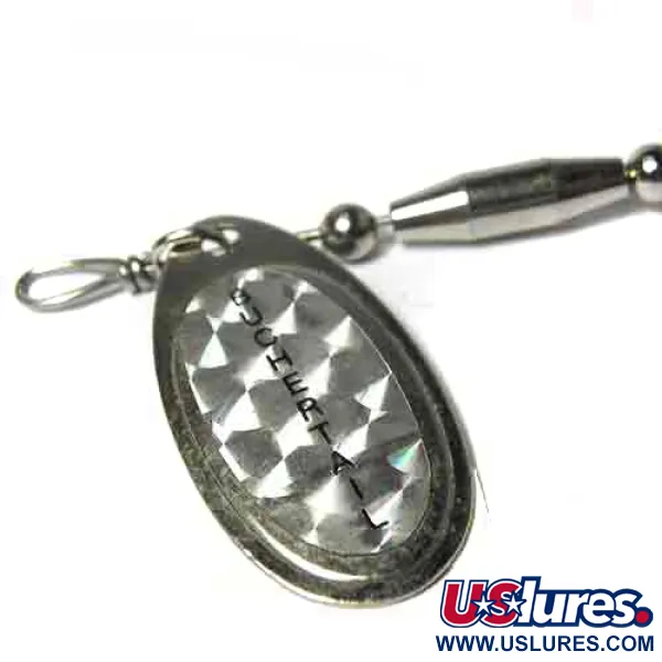 Nikeliuoti lapeliai su ryškiu holografiniu žvynelių raštu apibūdina šį Buchertail 500 kaip klasikinę vidutinio dydžio sukrę. Šis Joe Bucher kūrinys sveria 17 g (3/5 oz) ir turi pasunkintą korpusą iš sidabro spalvos metalinių karoliukų, kurie suteikia reikiamą svorį tolimiems metimams į žolių pakraščius ar virš nuskendusių rąstų. Storą juodą bucktail uodegėlę prilaiko ryškus raudonų siūlų apvyniojimas, kuris tarnauja kaip vizualinis atakos taškas priešais galinį trišakį kabliuką. Šis egzempliorius, kuriam priskirtas produkto kodas 0017, demonstruoja tvirtą amerikietišką konstrukciją, būdingą prekės ženklo reputacijai gaudant trofėjines lydekas ir maskinongus. Atspindintis holograminis lipdukas ant lapelio išlieka ryškus, sukurtas maksimaliai padidinti šviesos blykstelėjimą įvairaus skaidrumo vandenyje. Vertinant fizinę būklę, masalas turi 4/5 įvertinimą, išlieka švarus ir gerai prižiūrėtas. Jame naudojama tvirta vielinė kilpelė saugiam pavadėlio tvirtinimui – tai paprastos ir efektyvios Joe Bucher furnitūros bruožas.