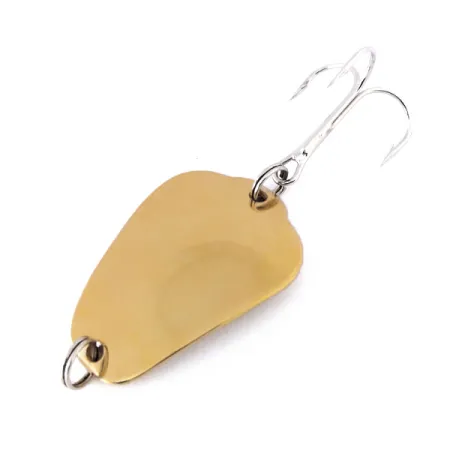 4 cm (1 1/2") ilgio štampuotas šio egzemplioriaus metalinis korpusas spindi poliruota aukso apdaila. Ši Tony Accetta Bug-Spoon yra vidurio amžiaus amerikietiško žūklės įrankių dizaino pavyzdys, sverianti 14 g (1/2 oz) efektyviam metimui. Aukso danga puikiai išsilaikiusi ant viso lapo formos silueto, kurio nugarėlėje yra ryškus įspaudas „BUG-SPOON“. Kaip nenaudotas masalas, kurio būklė vertinama 6 balais, vartiklė išlaiko savo pradinį blizgesį be jokių naudojimo ar senėjimo žymių. Su produkto kodu 10595, komplektaciją sudaro tvirti jungiamieji žiedeliai abiejuose galuose, o galinis laiko didelį, ryškiai sidabrinį trišakį kabliuką. Konstrukcija yra tvirta ir kompaktiška, atitinkanti JAV gamybos standartus.
