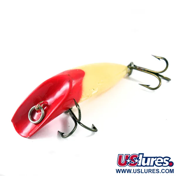 Šis 28g (1oz) sveriantis vintažinis radinys pasižymi kultine tuščiavidure konstrukcija, kuri reprezentuoja prekės ženklo paveldą. Sodriai raudona galvutė pereina į kreminės baltos spalvos korpusą – šis ryškus derinys dažnai pasirenkamas plėšrių žuvų žūklei esant įvairiam vandens skaidrumui. Tiksliai 10cm (4") ilgio modelis (produkto kodas 1236) turi klasikinę įgaubtą priekinę dalį, kuri tarnauja kaip vientisas nėrimo mechanizmas. Masalas ginkluotas dviem ant pilvo ir uodegos sumontuotais trišakiais kabliukais bei tvirtu žiedeliu valo tvirtinimo taške. Būklė vertinama solidžiu 4/5 balu, išlaikyta lygi ir blizgi danga, kurią vertina kolekcininkai. Kanadoje pagaminti masalai garsėja savo išskirtiniu profiliu ir puikiomis metimo savybėmis.
