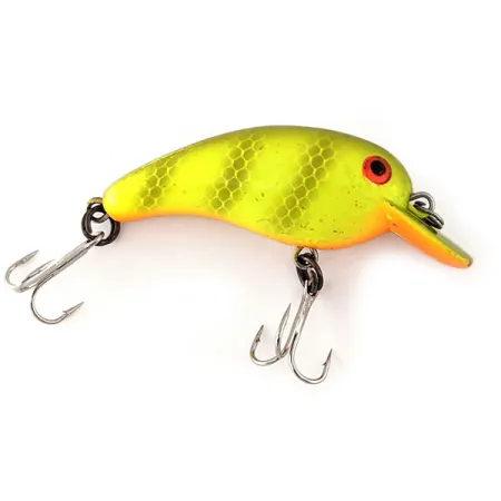 Ryškiai geltoni dažai su klasikiniu korio formos žvynelių raštu puošia šį kompaktinį 4 cm (1 1/2") voblerį. Sveriantis 4 g (1/8 oz), šis Cotton Cordell Big O yra puikus produkto kodo 11219 pavyzdys, turintis firminį kvadratinį liežuvėlį (square lip), skirtą nerti iki 0,9 m (3 pėdų) gylio. Ryškiai geltoną kūną papildo subtilus oranžinis pilvelis ir ryškios raudonai juodos akys – tokia spalvinė gama dažnai pasirenkama žvejojant ešerius, salačius ir lydekas įvairiomis vandens sąlygomis. Šis JAV pagamintas egzempliorius yra išskirtinės būklės, įvertintas 5/5 už švarų paviršių ir nepažeistą furnitūrą. Du aštrūs trišakiai kabliukai pritvirtinti tvirtais žiedeliais, paruošti metimams į seklias slėptuves. Trumpas, stambus Big O kūno profilis padėjo suformuoti šiuolaikinę sekliai nertančių voblerių kategoriją.