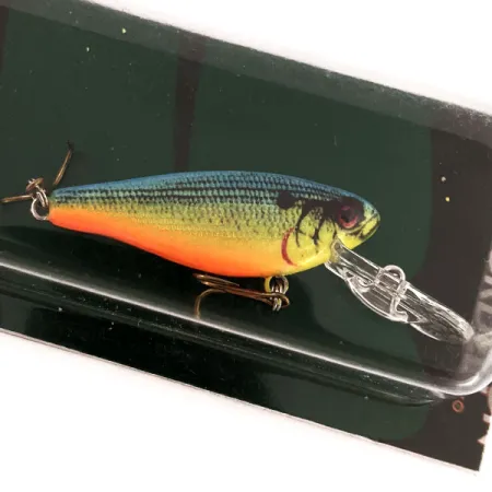 Ryškiai oranžinis-raudonas pilvelis užtikrina puikų matomumą iš apačios šiam 4 g (1/8 oz) Cotton Cordell C.C. Shad vobleriui. 4,5 cm (1 3/4") ilgio masalas, pažymėtas produkto kodu 12920, yra plaukiantis ir barškantis, specialiai sukurtas ešerių ir sterkų žūklei. Spalvinė gama pasižymi sodriai mėlyna nugara, pereinančia į gelsvai žalius žvynuotus šonus su ryškia tamsia dėme už žiaunų dangtelio. Šis egzempliorius yra nenaudotas, su švariu, skaidriu liežuvėliu ir originalia bronzos apdailos furnitūra. Priklausomai nuo technikos, metant jis paneria iki 1,8 m (6 ft), o velkiaujant – iki 4 m (13 ft). Plona, plokščiašonė konstrukcija tiesiogiai atspindi Cotton Cordell gamybos palikimą Hot Springse, Arkanzase, o pakuotė atitinka 2012 m. gamybos standartus.