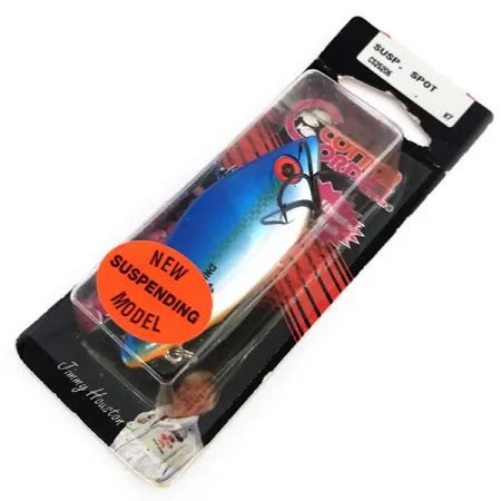Šis 7,5 cm (3") ilgio bedantis vobleris (lipless crankbait), nudažytas ryškiai mėlyna spalva palei nugarėlę, yra klasikinė Arkanzase gaminamos žūklės įrangos pavyzdys. 12 g (2/5 oz) svorio „Suspending Spot“ yra sukurtas specialiai tam, kad sustojus traukimui jis pakibtų vandens storymėje, tuo skirdamasis nuo greičiau skęstančio originalaus „Super Spot“. Šis egzempliorius yra nenaudotas, išsaugotas originalioje 1997 m. pakuotėje su ryškiai oranžiniu apvaliu lipduku „New Suspending Model“. Voblerio viduje yra suderinta garso kamera, skirta skleisti barškėjimą ir vibraciją metimo ar velčiavimo metu. Jame sumontuoti aštrūs besisukantys „Excalibur“ trišakiai kabliukai – aukščiausios klasės detalė to laikmečio masalams. Pagamintas Fort Smite, Arkanzase, JAV, šis masalas turi prekės kodą 9917 ir išlieka pagrindiniu pasirinkimu žvejojant viską – nuo lydekų ir ešerių iki lašišų ir upėtakių.
