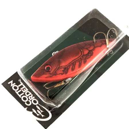 Šis 1/2 oz (14 g) sveriantis skęstantis bedantis vobleris (lipless) yra puikus Cotton Cordell TH Spot serijos pavyzdys. 7,5 cm (3") korpusas pasižymi detaliu Red Crawdad raštu su tamsiais, vėžiagyvius primenančiais akcentais giliame purpuro fone. Šis egzempliorius, kurio prekės kodas 11697, yra nenaudotas, originalioje gamyklinėje pakuotėje. Sukurtas kintamam nėrimo gyliui, jis yra universalus įrankis tiek spiningavimui, tiek velkiavimui gaudant ešerius, standartinius sterkus ar upėtakius. Kaip triukšmingas „rattlin“ tipo masalas, jo vidinė struktūra sukurta garsiniam efektui vandenyje. Pagamintas JAV, masalas turi originalius auksiniu sluoksniu dengtus trišakius kabliukus. Pakuotė atspindi prekės ženklo kilmę iš Arkanzaso, dokumentuojant Cotton Cordell inovacijų istoriją Catherine ežere, siekiančią 1940-uosius metus.