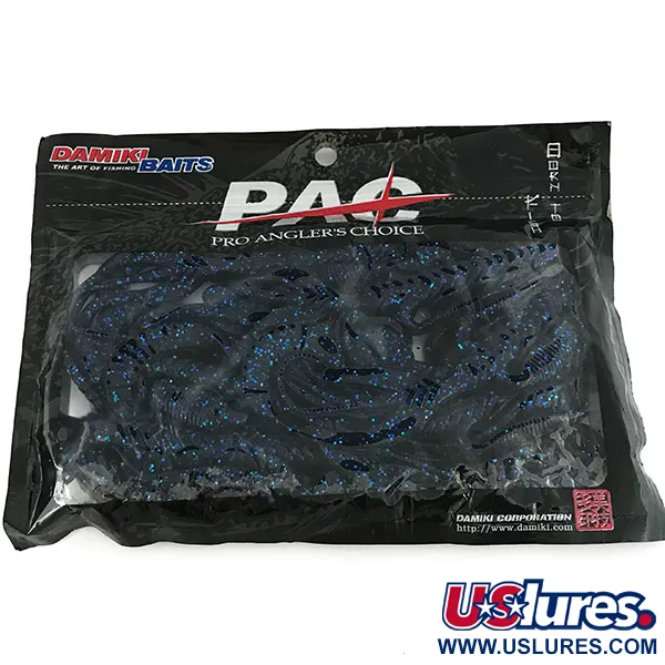 Gilus mėlynas pigmentas, papildytas ryškiais mėlynais mikro-blizgučiais, apibrėžia šių 7 colių (18 cm) creature tipo masalų išvaizdą. Klasifikuojamas pagal produkto kodą 7096, Monster Miki pasižymi sudėtingu dizainu, kurį sudaro rumbuotas kūnas, šoninės ataugos ir dvigubos juostinės uodegos. Nors Damiki yra gerai žinomas tarptautinis prekės ženklas, ši konkreti Pro Angler's Choice (PAC) serija buvo pagaminta JAV, žymint lokalizuotos gamybos laikotarpį Amerikos rinkai. Pakuotė iliustruoja dizaino universalumą, siūlant Texas Rig, Drop-shot Rig konfigūracijas arba naudojimą kaip masyvų sijoninių džigų (skirted jig) priedą (trailer). Kiekvienas iš 8 šios pakuotės vienetų yra nenaudotas, išlaikantis originalią minkšto plastiko tekstūrą ir vientisumą. Rumbuotas ataugų paviršiaus plotas suteikia ryškų taktilinį kontrastą, palyginti su tradicinėmis lygiomis driežų ar vėžių imitacijomis.