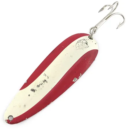 Ši klasikinė 28 g (1 uncijos) blizgė pasižymi masyvia metaline konstrukcija, dėl kurios šis prekės ženklas Mičigano žvejų dėžutėse užima svarbią vietą dar nuo 1906 metų. 9 cm (3 1/2 colio) korpusas yra nudažytas firminiu „Red Devle“ raštu – ryškiai raudonu pagrindu su aiškia balta įstriža juosta išgaubtoje pusėje. Vidinėje sidabrinio atspalvio įgaubtoje pusėje aiškiai matomas autentiškas antspaudas „DARDEVLE DETROIT. U.S.A.“, patvirtinantis, kad tai ankstyvosios „Eppinger“ gamybos pavyzdys. Gaminys, kurio kodas 23164, pasižymi patyrusio veterano charakteriu: būklė vertinama 3,5 iš 5, matomi pavieniai dažų nutrupėjimai ir paviršiaus nusidėvėjimas išilgai kraštų po ankstesnių žvejybų. Furnitūrą sudaro patvarus sidabrinis žiedelis ir tvirtas trišakis kablys, tinkamas tiek spiningavimui, tiek velkiavimui. Prie tvirtinimo kilpelės vis dar matomas originalus velnio galvos logotipas, išspaustas naudojant unikalias bendrovės formas. Šis konkretus svoris ir pailgas profilis yra skirti pasiekti gilesnius vandens sluoksnius, kuriuose dažniausiai laikosi stambios plėšriosios žuvys.