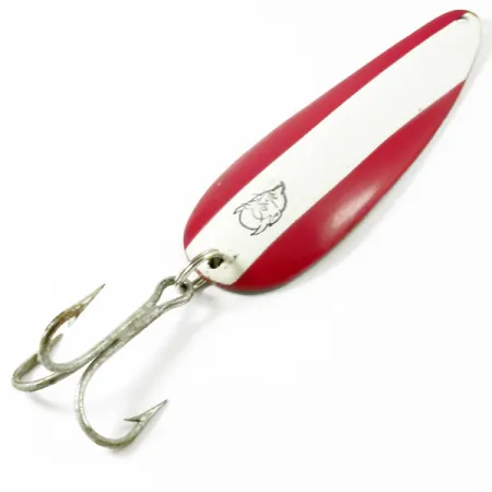 Ši klasikinė vartiklė yra 9 cm (3 1/2") ilgio ir sveria solidžius 28 g (1 oz), todėl tai yra puikus pasirinkimas stambių plėšrūnų žvejybai. Modelis, identifikuojamas pagal prekės kodą 3307, pasižymi nesenstančiu raudonai ir baltai dryžuotu įstrižu raštu iškilioje pusėje, o prie kabliuko puikuojasi kultinis įspaustas velnio galvos logotipas. Kitoje pusėje poliruoto nikelio apdaila yra itin švari, joje matomas giliai įspaustas Eppinger pavadinimas ir kilmė iš Mičigano gamyklos. Šis konkretus masalas yra 5/5 būklės, pasižymi ryškiu, puikiai išsilaikiusiu dažymu ir tvirtu trišakiu kabliu. Žiedelis yra patikimas, užtikrinantis tvirtą jungtį tarp sunkaus metalinio korpuso ir kabliuko. Kaip autentiška Amerikos žūklės istorijos dalis, Eppinger Dardevle išlieka pagrindiniu elementu bet kurio kolekcininko rinkinyje dėl savo paprastos, efektyvios konstrukcijos ir legendinės Dirborno gamyklos kokybės.