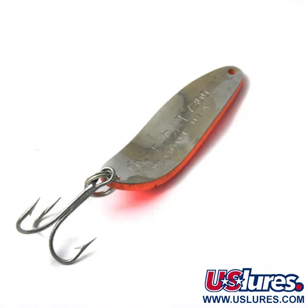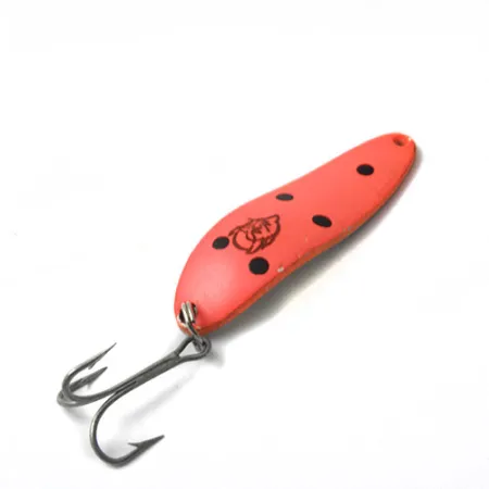 Šeši ryškūs juodi taškai yra įspausti ant šios klasikinės amerikietiškos blizgės ryškiai oranžinio paviršiaus. Ši 14 g (1/2 oz) svorio ir 5,5 cm (2 1/4") ilgio Eppinger Dardevle Cop-E-Cat 7300 turi ikoninį „Devil Head“ logotipą, kuris daugiau nei šimtmetį žymi šiuos Mičigane sukurtus masalus. Raudonai oranžiniai dažai užtikrina didelio kontrasto profilį, o štampuotas metalinis korpusas skirtas universaliam naudojimui spiningaujant ir velkiaujant. Atpažįstama pagal prekės kodą 0449, blizgė sukomplektuota su tvirtu trišakiu kabliuku ir patikimu žiedeliu. Šis konkretus egzempliorius yra 4/5 būklės, o tai pabrėžia Lou Eppinger originalių gamybos standartų patvarumą. Įgaubtas vidinis paviršius užtikrina reikiamą vandens pasipriešinimą jos firminiam žaidimui vandens sluoksnyje.