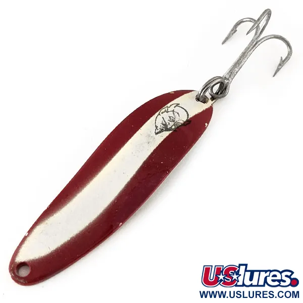 Įspaudas ant nikeliuotos nugarėlės aiškiai nurodo, kad ši 2 1/4" (5,5 cm) blizgė yra originalus Eppinger Detroit USA gaminys. Sverianti 1/3 oz (10 g), Dardevle Cop-E-Cat 7300 pasižymi firminia įstriža balta juosta ant sodriai raudono emalio, o šalia viršutinės kilpelės puikuojasi mažas, klasikinis velnio galvos logotipas. Šis konkretus modelis, žymimas prekės kodu 11176, turi ryškią, atspindinčią nikeliuotą nugarėlę, kuri stipriai kontrastuoja su dažyta viršutine dalimi. Eppinger nuo pat pirmųjų dienų Mičigane naudoja patentuotas formas, kad išgautų įgaubtą pavidalą, suteikiantį blizgei išskirtinį svyravimą traukiant masalą. Furnitūrą sudaro tvirtas žiedelis ir aštrus trišakis kabliukas. Šis egzempliorius vertinamas 5/5, jo danga puikiai išlaikyta, o metaliniai paviršiai švarūs. Blizgės dizainas pritaikytas universaliam naudojimui tiek spiningaujant, tiek velkiaujant įvairiomis sąlygomis.