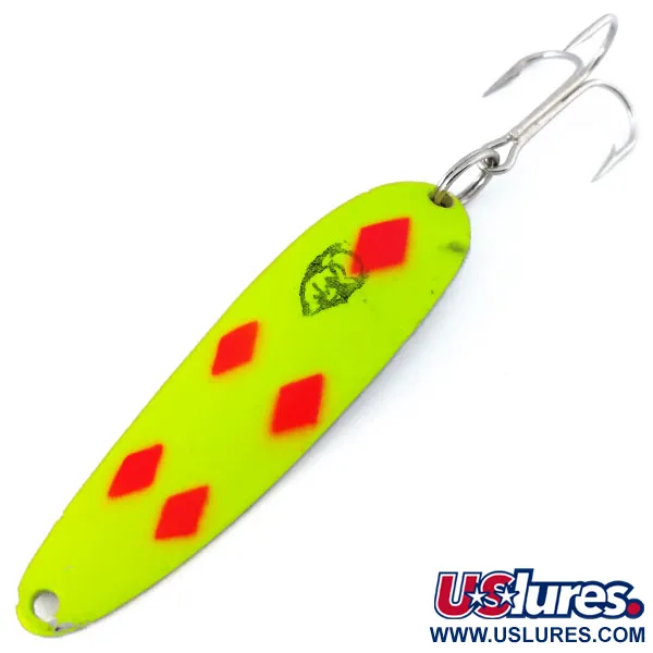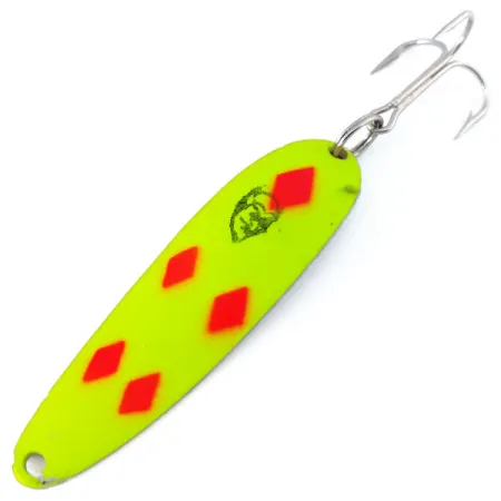 Ryški fluorescencinė geltona danga sudaro šios metalinės blizgės pagrindą, papuoštą legendiniu ryškiai raudonu „Five of Diamonds“ raštu. 1/2 oz (14 g) svorio ir 2 1/2" (6,5 cm) ilgio „Eppinger Dardevle Cop-E-Cat 7400 UV“ yra pagaminta naudojant originalias formas, kurias Lou Eppinger išpopuliarino Mičigane. Didelio matomumo apdaila sustiprinta UV spinduliams jautriu švytėjimu, todėl masalas yra gerai pastebimas prasto apšvietimo sąlygomis arba gilesniame vandenyje. Viršutinėje dalyje yra klasikinė „Velnio“ galvos įspaudas – JAV gaminamos kokybės parašas, kurį „Eppinger“ išlaiko nuo 1906 metų. Šis egzempliorius yra puikios būklės (5/5), su originalia furnitūra ir aštriu trišakiu kabliuku. Atpažįstama pagal prekės kodą 10817, ši blizgė dėl savo įgaubtos, pailgos formos sukuria specifinius virpesius tolygiai traukiant.