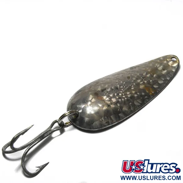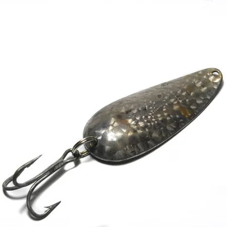 Kaltas, žvynų rašto sidabrinis paviršius puikiai atspindi šviesą šioje 3 colių (7,5 cm) Eppinger blizgėje – tai dizainas, gaminamas naudojant originalias formas nuo pat įmonės veiklos pradžios Mičigane. Šis egzempliorius, pažymėtas prekės kodu 0305, yra Crystal (Scale Silver) spalvinimo, užtikrinančio daugialypį atspindį vandenyje, palyginti su standartinėmis lygiomis blizgėmis. Klasikinis Dardevlet pavadinimas aiškiai įspaustas įgaubtoje masalo dalyje, pabrėžiant jo autentiškumą ir amerikietišką kilmę. 4/5 būklės metaliniai paviršiai išlieka ryškūs, o originalus trišakis kablys saugiai pritvirtintas tvirtu žiedeliu. Pailga geometrija ir gili forma sukurta Eppinger specialistų, kad masalas išraiškingai svirduliuotų traukiamas tolygiu tempu. Skaidriam vandeniui nikeliuota nugarėlė ir žvynuotas priekis sukuria natūralią prezentaciją plėšrioms žuvims. Tvirtinimo kilpelė siaurėjančiame gale rodo minimalų nusidėvėjimą, o tai reiškia, kad ši blizgė buvo kruopščiai prižiūrima kolekcininko dėžutėje.