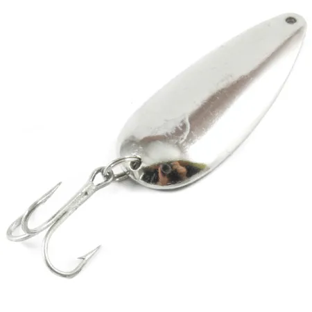Veidrodinė nikelio apdaila ant šios klasikinės blizgės puikiai atspindi šviesą, todėl tai yra puikus pasirinkimas žvejybai skaidriame vandenyje. Ši 21g (3/4oz) svorio ir 7cm (2 3/4") ilgio Eppinger Dardevle Dardevlet yra solidus įrankis metimui. Apvertus masalą, matosi ryškūs įspaudai „DARDEVLET“ ir „DETROIT, U.S.A.“, primenantys prekės ženklo ištakas 1906 m., kai Lou Eppinger pradėjo juos gaminti savo Mičigano rūsyje. Svorio žyma 3/4 OZ yra aiškiai įskaitoma įgaubtoje nugarėlėje šalia kilmės šalies. Blizgė komplektuojama su tvirtu trišakiu kabliuku, pritvirtintu per tvirtą žiedelį, ir beveik neturi sandėliavimo nusidėvėjimo žymių. Poliruotas paviršius išlieka išskirtinai ryškus, todėl šis egzempliorius vertinamas 5/5. Dardevlet pailga forma ir specifinė įgaubta konstrukcija (produkto kodas 3280) buvo tokia efektyvi, kad JAV vyriausybė kadaise įtraukė šiuos amerikietiškus masalus į aviacijos išgyvenimo rinkinius. Vadovaujantis gamintojo patarimais skaidriam vandeniui, tokia blizgė nikelio nugarėle užtikrina tinkamą blyksėjimą tolygiai ir lėtai traukiant.