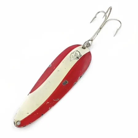 Ši svari 28 g (1 oz) blizgė yra tikra XX a. 6-ojo dešimtmečio Amerikos žūklės istorijos dalis. „Dardevle Detroit“ nesunku atpažinti iš klasikinio „Red Devle“ rašto – sodriai raudonos spalvos korpuso su kremine juosta per vidurį. 9 cm (3 1/2 colio) ilgio metalinis korpusas papuoštas ikonišku velnio galvos logotipu, įspaustu šalia viršutinės kilpelės – tai skiriamasis „Eppinger“ gamybos ženklas. Atsižvelgiant į 4/5 būklės įvertinimą, ant masalo matomas dažų nusidėvėjimas ir nedideli nuskilimai kraštuose bei paviršiuje, kas tik pabrėžia jo autentiškumą ir primena apie aktyvų naudojimą sunkiajam spiningavimui ar velčiavimui. Originalus sidabrinės spalvos trišakis kablys yra patikimai pritvirtintas prie galinio žiedo. Šis konkretus egzempliorius, kurio prekės kodas 23891, liudija apie tvirtą konstrukciją, dėl kurios šios blizgės dešimtmečius buvo nepakeičiamas įrankis žvejų dėžutėse.