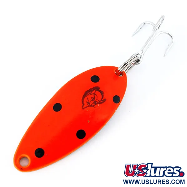 Poliruotas nikelis dengia šios 4 cm ilgio blisgės nugarėlę, suteikdamas ryškų metalinį spindesį, papildantį ryškiai dažytą priekinę dalį. Šis Devle Dog 5200 UV (produkto kodas 10931) yra nudažytas puikiai matoma fluorescencine raudona spalva su penkiais ryškiais juodais taškais, supančiais klasikinį „Eppinger“ velnio galvos įspaudą. 7 g svorio metalinis korpusas sukurtas subalansuotam metimui ir ilgaamžiškumui. Masalo danga reaguoja į UV spindulius, o veikiama ultravioletinių spindulių ji tampa sodrios, švytinčios oranžinės-raudonos spalvos – tai padeda masalui būti geriau matomam sudrumstame vandenyje ar esant prastam apšvietimui. Aštrus sidabrinio atspalvio trišakis kabliukas pritvirtintas tvirtu žiedeliu galinėje dalyje, o priekyje yra tvarkinga kilpelė valui tvirtinti. Šis konkretus pavyzdys yra nenaudotas ir atrodo lygiai taip pat, kaip išvežtas iš Mičigano gamyklos.