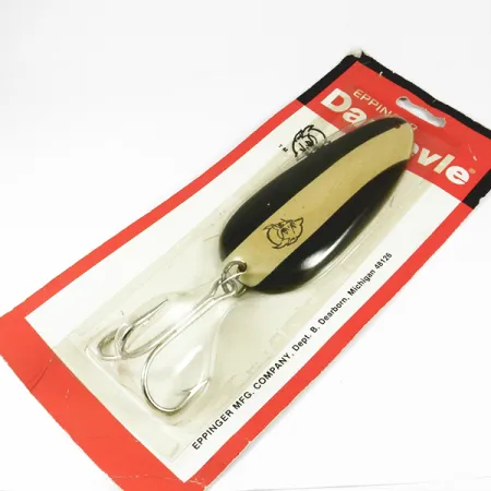 Šis 58 g (2 oz) svorio Huskie Junior variantas, priklausantis legendinei Dardevle blizgių šeimai, yra pakankamai masyvus, kad pasiektų giliai tūnančias lydekas ir maskinongus (muskie). „Eppinger“ šaknys Dirborne, Mičigano valstijoje, atsispindi vintažinėje pakuotėje su klasika tapusia raudona ir balta grafika, kurią bendrovė naudoja dešimtmečius. Black / White / Nickel spalvinė gama sukuria didelio kontrasto dryžuotą raštą išgaubtoje pusėje, papildytą ikonišku velnio galvos logotipu, įspaustu tiesiai į metalą. 11,5 cm (4 1/2") ilgio štampuotas korpusas atkartoja specifinę „Eppinger“ sukurtą geometriją, skirtą išraiškingam judėjimui be papildomų svorių. Šis egzempliorius, pažymėtas prekės kodu 3537, yra nenaudotas originalioje pakuotėje, todėl išlaikė blizgią nikelio apdailą įgaubtoje pusėje ir aštrius, tvirtus trišakius kabliukus. Pakuotėje nurodytas Huskie Junior pavadinimas – tai dydis, specialiai sukurtas dideliems plėšrūnams dideliuose vandens telkiniuose. Kitoje pusėje esanti originali „Eppinger Mfg. Company“ etiketė suteikia istorinį kontekstą gamybos laikotarpiui Dirborne.
