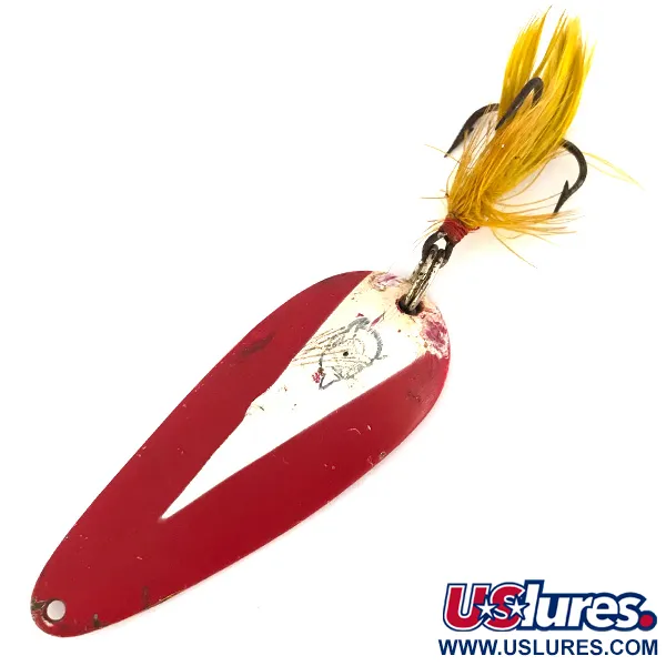 Ant varine apdaila padengtos nugarėlės aiškiai iškaltas „DARDEVLE IMP U.S.A.“ žymėjimas patvirtina, kad ši 5,5 cm (2 1/4 colio) klasika yra tikras originalus „Eppinger“ gaminys. Šis konkretus 11 g (2/5 oz) egzempliorius pasižymi ikonišku raudonai baltu raštu įgaubtame priekyje, turinčiu šiek tiek nusidėvėjimo žymių – emalio atskalų, pro kurias matomas metalas. Furnitūra išlieka tvirta, įskaitant trišakį kabliuką su ryškiai geltonomis plunksnomis, aprištomis raudonu siūlu, kad būtų sukurtas didesnis profilis. Įvertinta 4/5, ši blikvė rodo esanti patikima žūklės dėžutės dalis, kartu išlaikanti ryškią spalvą. „Eppinger“ nuo 1906 m. naudoja patentuotas formas šiai specifinei pailgai geometrijai išgauti – ši forma tokia patikima, kad prekės ženklas kadaise buvo parinktas karinės aviacijos išgyvenimo rinkiniams. Metant šį 7790 prekės kodo masalą, variu dengta nugarėlė sukuria šiltą blyksnį, kuris ypač gerai matomas drumstame ar debesuotame vandenyje.