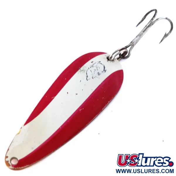 Raudonos ir baltos emalio juostos puošia šio klasikinio masalo priekinę dalį – tai raštas, kuris ištisas kartas išlieka nepakeičiamas žvejų dėžutėse. Ši Eppinger Dardevle Imp Copper Back blizgė (produkto kodas 10645) sveria 11 g (2/5 oz) ir yra 5,5 cm (2 1/4") ilgio. Ryškūs dažai įgaubtoje pusėje dera su vientiso vario nugarėle – tokia konfigūracija vertinama dėl šilto, subtilaus blyksnio drumstame vandenyje. Atidžiau apžiūrėjus, nugarėlėje esantis įspaudas „DARDEVLE IMP U.S.A.“ išlieka gilus ir aiškus. Blizgė yra 5/5 būklės, jos paviršius blizgus, švarus, su minimaliais amžiaus požymiais. Furnitūrą sudaro tvirtas trišakis kablys, pritvirtintas sustiprintu žiedeliu, atspindinčiu Eppinger būdingą amerikietišką kokybę. Metalinis korpusas yra sunkus pagal savo dydį, o tai padeda atlikti tolimus metimus vėjuotomis sąlygomis.
