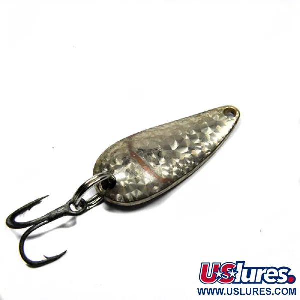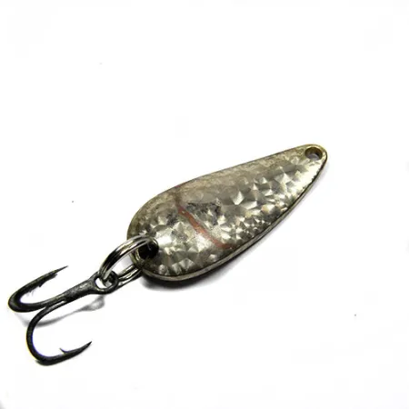 Kalinėta tekstūra gaudo šviesą ant šios 3 cm (1 1/4") blizgės Crystal silver scale paviršiaus. Ši Eppinger Lildevle, žymima produkto kodu 0341, turi klasikinį Detroit U.S.A. įspaudą kitoje pusėje – detalę, nurodančią kilmę iš Mičigane įsikurti Lou Eppinger dirbtuvių. 3,4 g (1/8 oz) svorio blizgė apginkluota tvirtu trišakiu kabliuku, pritvirtintu saugiu žiedeliu. Masalas yra 4/5 būklės, su gerai išlikusiu padengimu ir aiškiais įspaudais. Įgaubta korpuso forma sukurta užtikrinti ryškų siūbuojantį žaidimą tolygiai traukiant, todėl tai yra pagrindinis įrankis spiningavimui tiek skaidriame, tiek drumstame vandenyje. Tekstūruotas paviršius imituoja smulkios žuvies žvynų žvilgesį – šį dizaino principą Eppinger naudoja nuo XX a. pradžios.