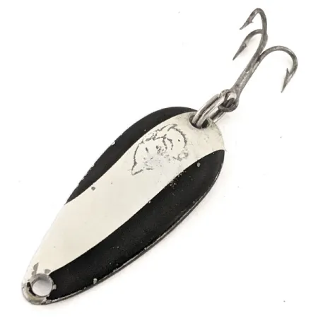 Ši 6 g (3/16 uncijos) sverianti vintažinė vartiklė atspindi Lou Eppingerio meistriškumą, kilusį iš jo dirbtuvių Mičigane. Priekinėje šio 3,5 cm (1 1/2 colio) masalo pusėje matomas ryškus įstrižas spalvų derinys, kur švari balta juosta kerta du sodriai juodus laukus. Ant baltosios juostos puikuojasi iškilus delfino logotipas – subtilus prekės ženklo turtingos gamybos istorijos ženklas. Apvertus masalą, ant poliruotos nikelio nugarėlės matomas įspaustas „DARDEVLE MIDGET U.S.A.“ spaudas. Šis konkretus egzempliorius, pažymėtas prekės kodu 12850, yra 5/5 būklės, išlaikęs originalų blizgesį ir ryškias dažų linijas. Masalas komplektuojamas su originaliu trišakiu kabliu ir žiedeliu, tad puikiai tinka tiek kolekcinei vitrinai, tiek lengvos klasės įrankių deriniui. Skylutė valui tvirtinti yra tiksliai išmušta siaurajame gale, o tai pabrėžia patentuotų štampų, naudojamų JAV gamyklose, kokybę.