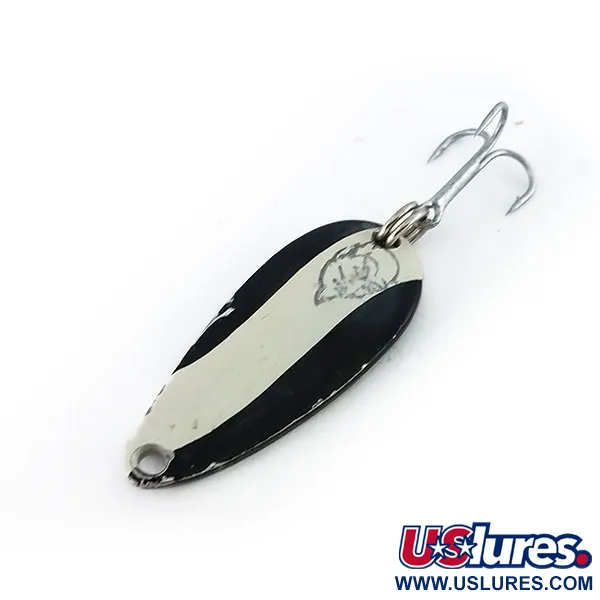 Ant poliruoto nikelio nugarėlės esantis įspaudas aiškiai nurodo, kad tai originali Eppinger vartiklė, pažymėta „DARDEVLE MIDGET U.S.A.“. Didelio kontrasto juodų ir baltų įstrižų juostų raštas priekinėje dalyje yra kiekvienos rimtos vartiklių dėžutės klasika. Šis 3,5 cm (1 1/2") ilgio ir 6 g (3/16 oz) svorio egzempliorius yra puikus mažesnio profilio masalų, naudojamų lengvam spiningavimui, pavyzdys. Ant centrinės baltos juostos matoma detali ikoniška velnio galvos grafika. Furnitūra tvirta, su žiedeliu ir aštriu trišakiu kabliuku. Būklė vertinama 5/5, ji puiki, tik prie pat valo tvirtinimo kilpelės matomas minimalus dažų nusitrynimas, o nikelio nugarėlė išlaikiusi veidrodinį spindesį. Mičigano valstijoje įsikūrusios Eppinger istorija atsispindi metalo apdirbimo kokybėje, gamyboje naudojant specializuotas firmines formas. Ši spalvinė gama, parinkta dėl gero matomumo esant skirtingam vandens skaidrumui, išlieka viena mėgstamiausių tarp žvejų, vertinančių Lou Eppinger palikimą, pradėtą jo rūsyje dar 1906 metais. Įgaubta metalinio korpuso forma yra firminis Dearborn gamyklos produkcijos ženklas.