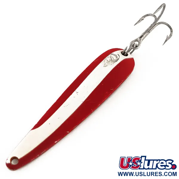 Storo metalo korpusas ir 28 g (1 oz) svoris daro šią blizgę puikiu pasirinkimu norint skrosti vėją ir pasiekti žuvis gilesniuose sluoksniuose. Ryškus raudonai ir baltai dryžuotas raštas priekinėje dalyje derinamas su blizgia nikeliuota nugarėle, užtikrinančia maksimalų blyksėjimą tolygiai traukiant masalą. 8 cm (3 1/4") ilgio korpusas pažymėtas istoriniu „SEADEVLE IMP DETROIT USA“ įspaudu – tai įmonės ankstyvųjų metų ženklas iki persikėlimo į Dyrborną 1959 m. Šis „Eppinger“ klasikos pavyzdys (produkto kodas 11723) yra 5/5 būklės, išlaikęs lygų, blizgantį paviršių ir aiškią velnio galvos grafiką. Didelis trišakis kablys saugiai pritvirtintas siaurame gale, o stabilų judėjimą užtikrina plati valo tvirtinimo anga kitame gale. Šios blizgės pagamintos naudojant tas pačias patentuotas formas, kurias sukūrė Lou Eppinger, kad būtų užtikrintas tikslus korpuso smailėjimas, būtinas efektyviam velkiavimui ir spiningavimui.